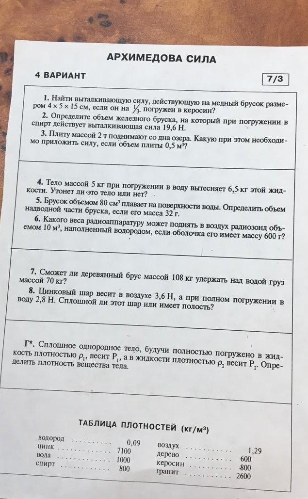 1. FA=pкер g Vn=800*10/3*10(-4)=0,8 H