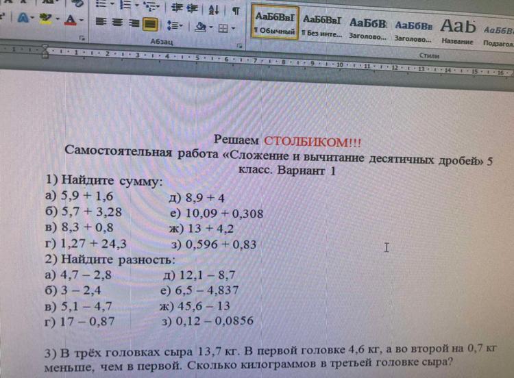 В трех головках сыра 13,7 кг. В первой головке 4,6 кг, а во второй на 0,7 кг меньше,чем в первой.сколько кг в третьей головке сыра