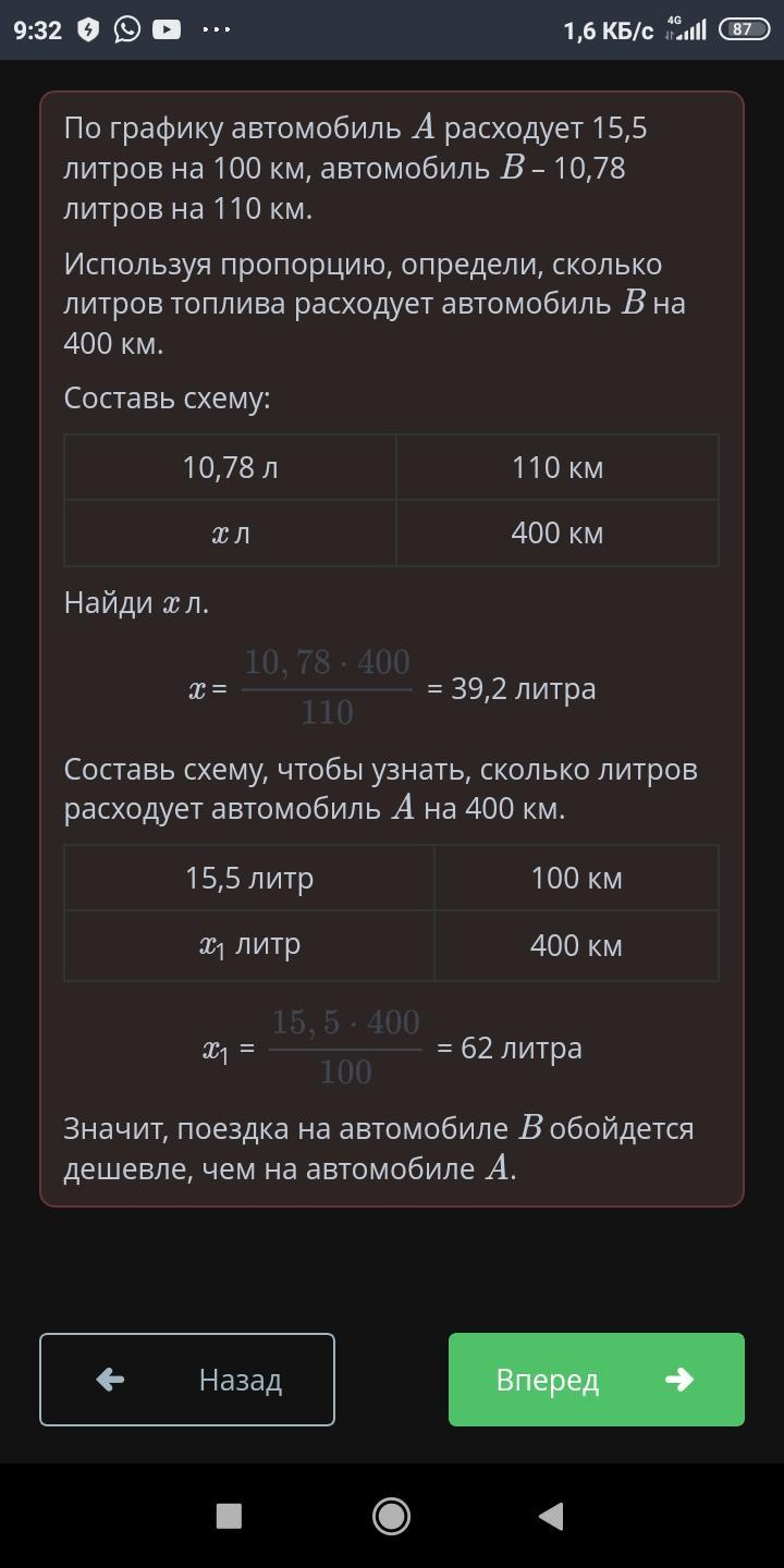 Ответ:Поездка на автомобиле B будет дешевле, чем на автомобиле A.