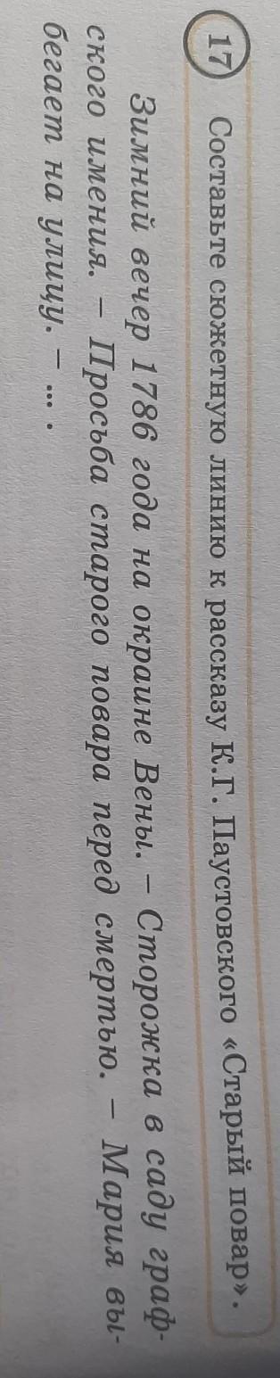 Составьте сюжетную линию к рассказу К.Г. Паустовского «Старый повар».