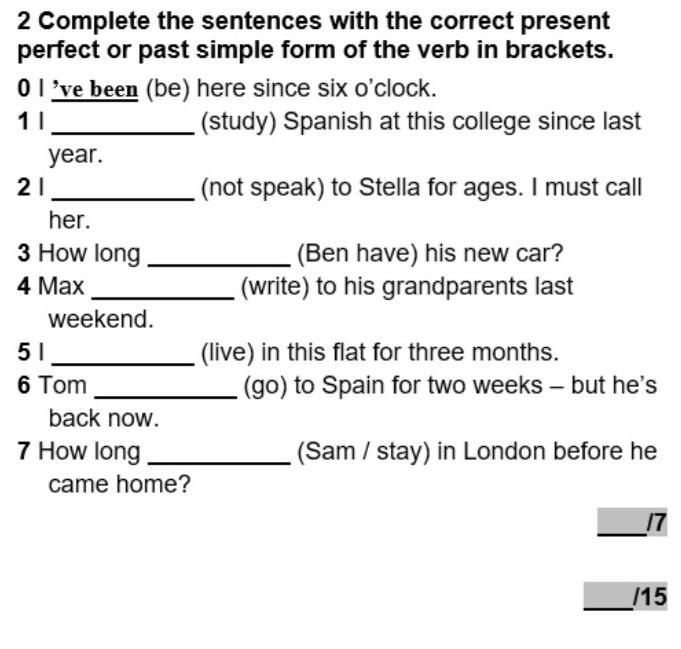 6 Tom has gone to Spain for two weeks - but he's back now.