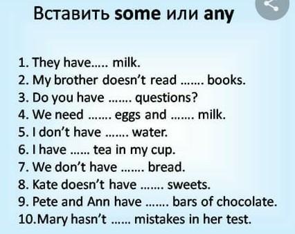 1.some 2.any 3.any 4.some ,some 5.any 6.some 7.any 8.any 9.some 10any