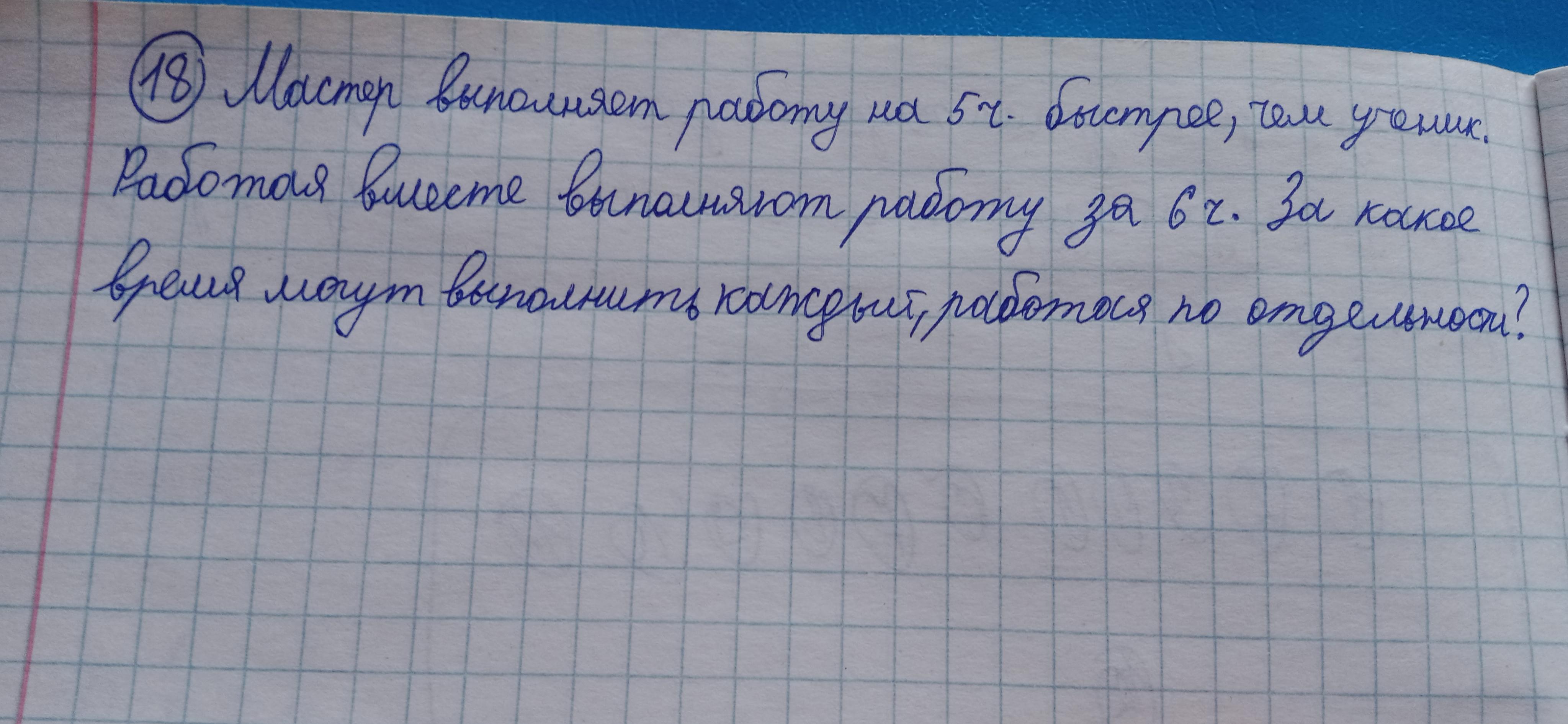 18) Ученик выполняет работу за х часов, мастер - за (х+5) часов.