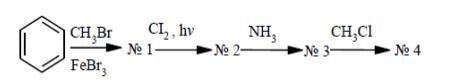 2) хлорируем толуол на свету, получим бензилхлорид:
