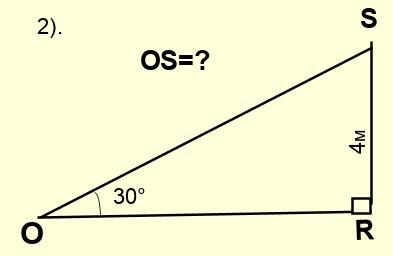отрезок, который лежит напротив угла 30⁰ равен половине гипотенузы. так как этот отрезок равен 4м, то чтобы найти ОS нужно SR умножить на 2, получается