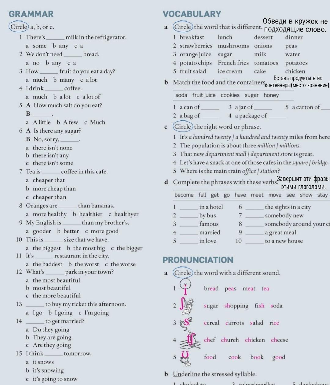 В разделе Grammar 7-15. В разделе Vocabulary задания под буквами: a, d, b. Прошу вас помочь!