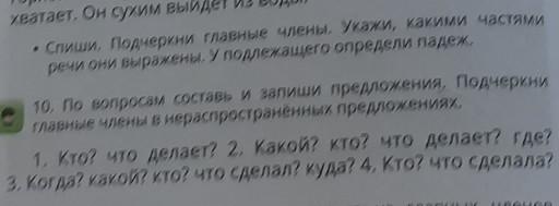 10.По вопросам составь и запиши предложения.Подчеркни главные члены в нераспрост
