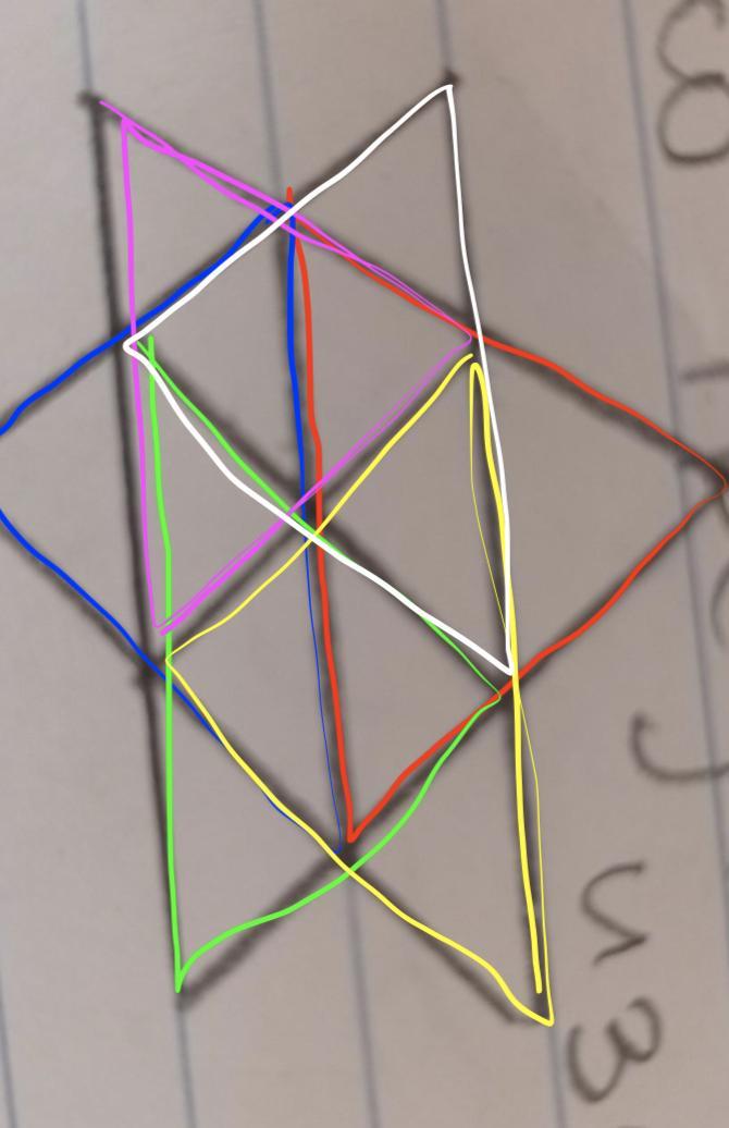 там 18 треугольников 12 маленьких и 6 больших, которые я выделил на фото