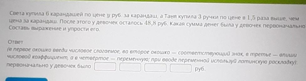 Теперь найдем начальную сумму, для этого остаток денег после покупки сложим со всей суммой карандашей и ручек.
