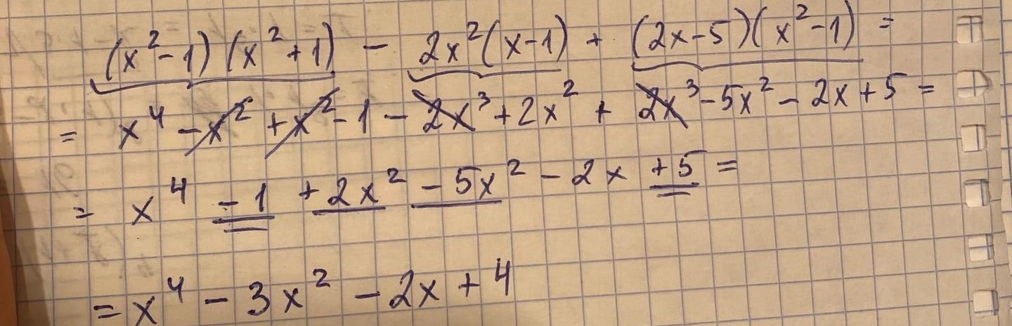 (х^2 − 1)(х^2 + 1) − 2х^2(х − 1)+(2х − 5)(х^2 − 1)