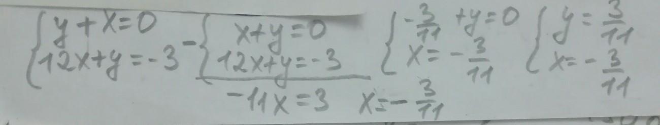 x = -3/11 y = - (- 3/11) = 3/11