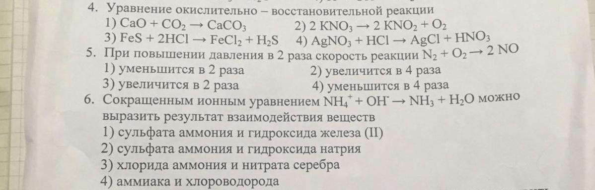 5) 2. Увеличится в 4 раза. V=k*[N2]*[O2]
