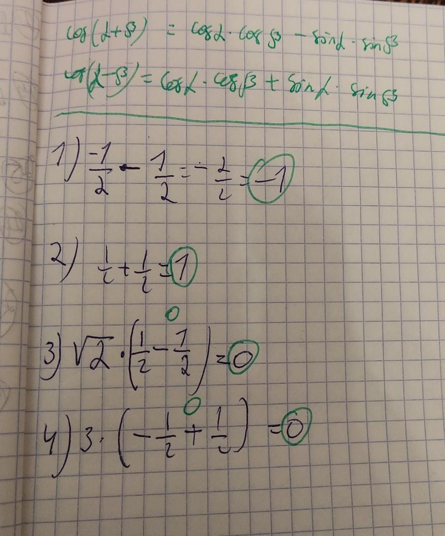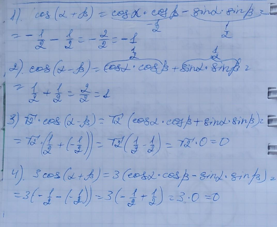 3) корень2• cos(a-B),если cosa•cosB=1/2 и sina•sinB=-1/2