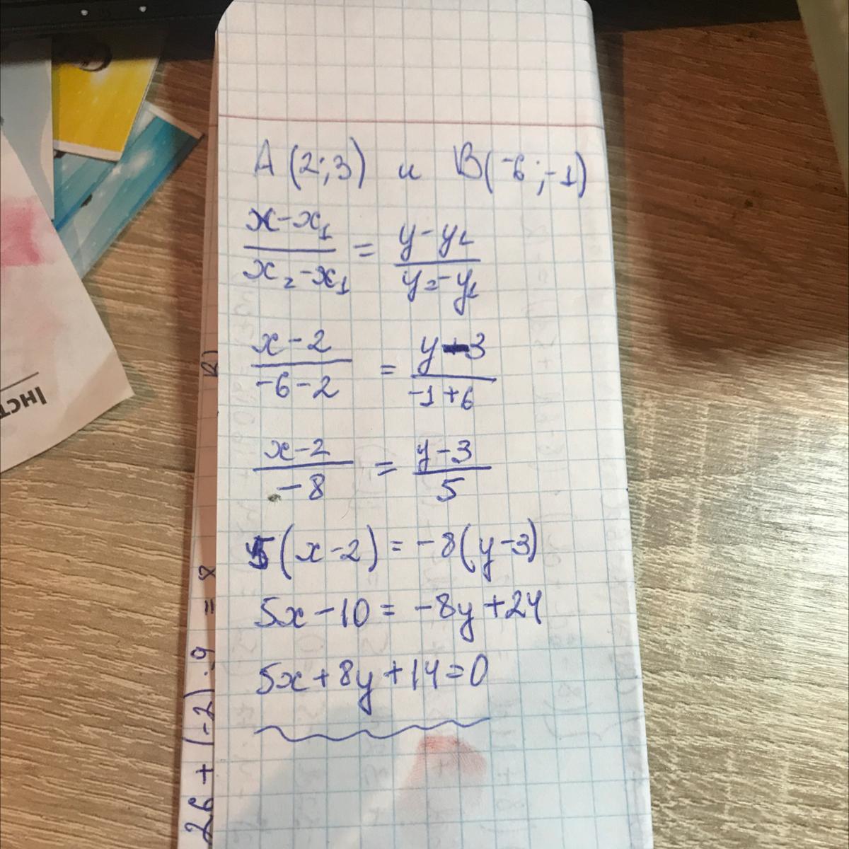 составьте уравнение прямой, проходящей через точки А(2;3) и В(-6;-1). (даю 35 баллов)