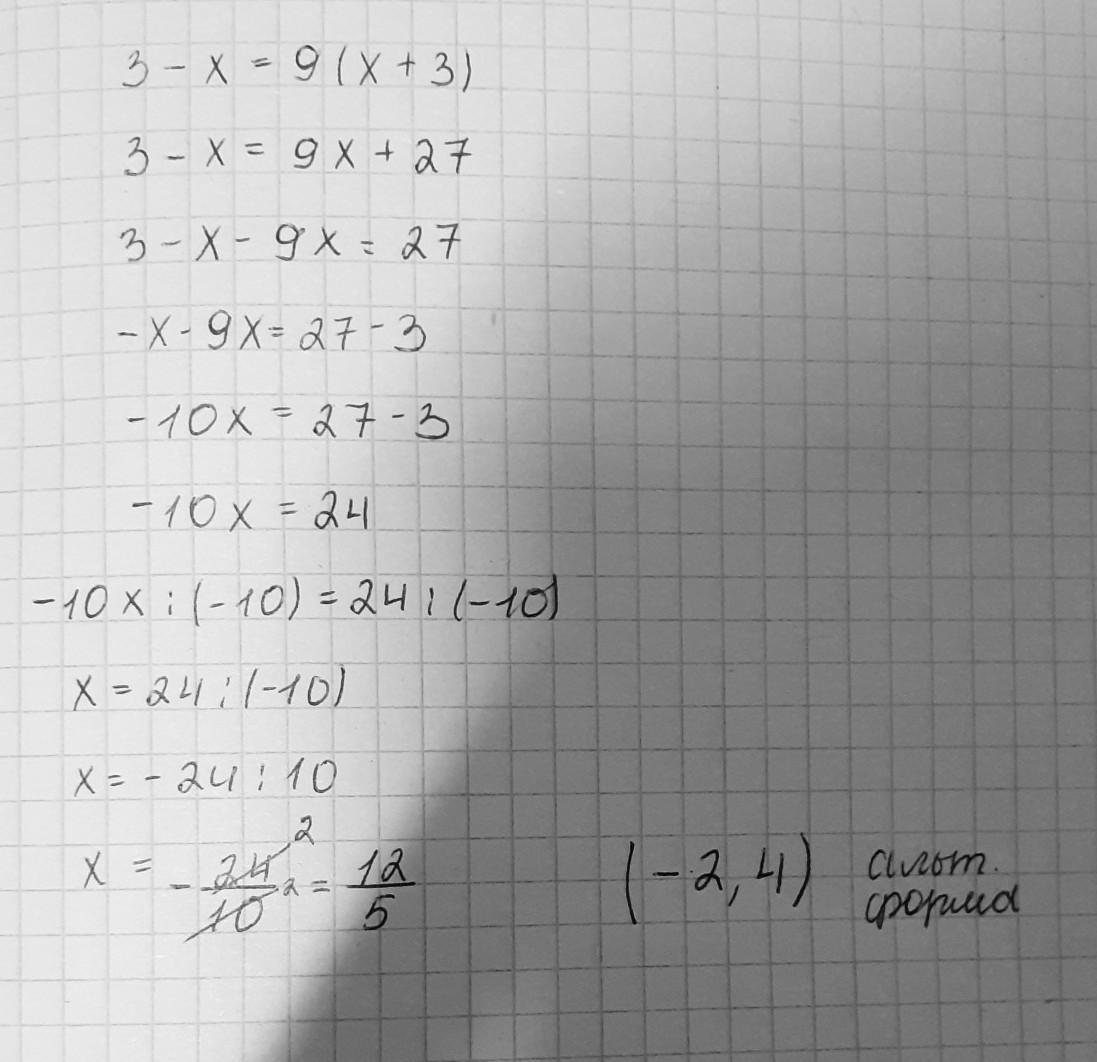 решить премер. 3-х=9(х+3)