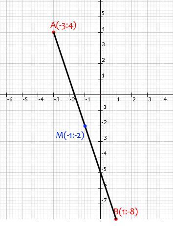 Дано точки А(-3,4) і В (1,-8).Точка М - середина відрізка АВ. Знайдіть координати вектора АМ.