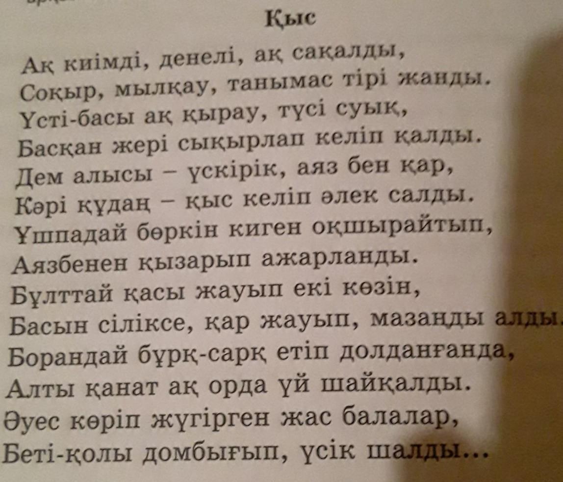 1)Белая одежда, тело, белая борода,Слепой, тупой, познавательный живой.Вершина белого мороза, холодный цвет,Место щелчков ударил.Дыхание это то, что украденная, мороз и снег,Старые двоюродные братья - зимы пришли и приклеили.Он был прочитан поразительным бременем,Он был брошен с обморожением.Облачные брови накрыли два глаза,Повысел голову, снег и обеспокоен.Когда подзренание. Шесть крыла Белая Орда была потрясена.Маленькие дети, которые бегут Лицо поражено и раздражает.