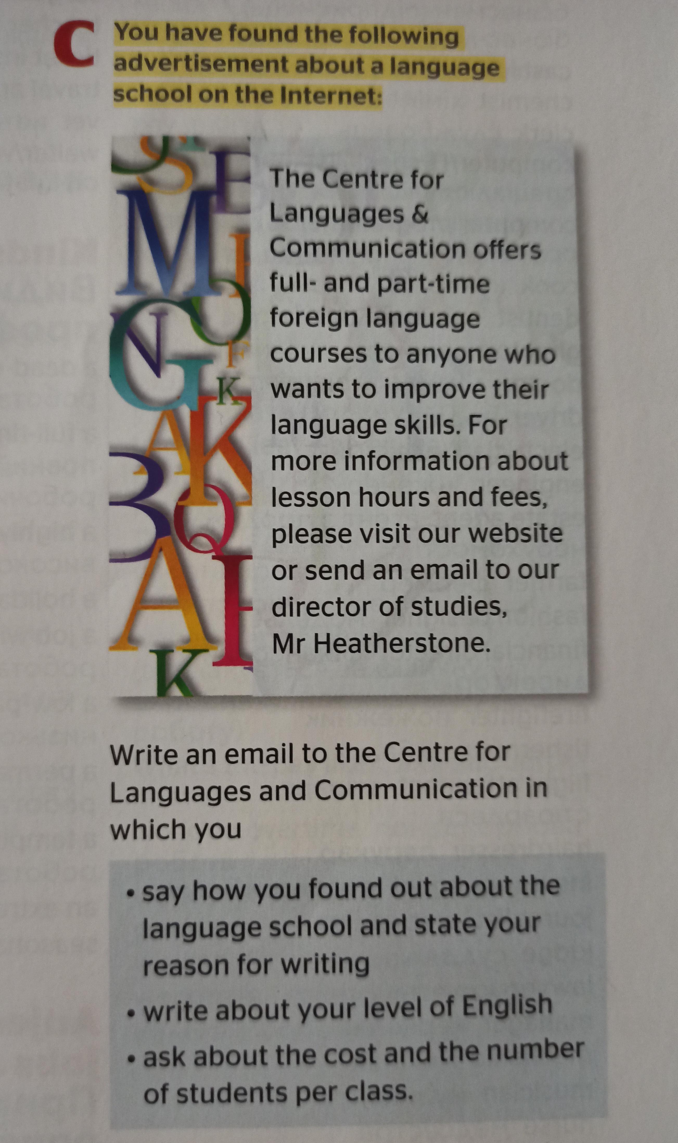 I am writing to you to enquire about full- and part-time language courses that have been advertised on your website of the Centre for Language and Communication.