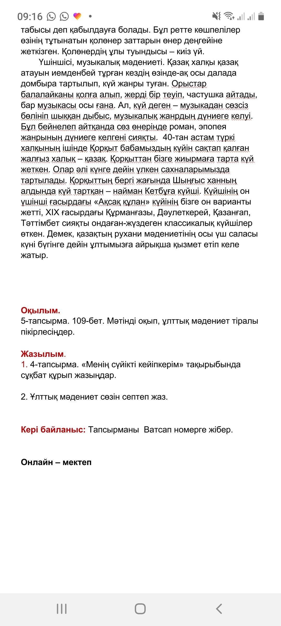 5)Пікірге Біздің ұлттық мәдениетке әдебиетіміз, дәстүріміз және өзіміз жатамыз.