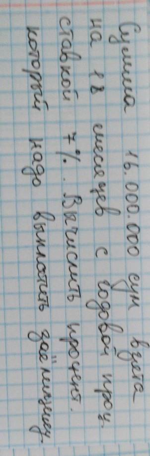 сумма 16.000.000 взята на 18 месяцев с годовой проц. ставкой 7%. Вычислить процент который надо выплатить заёмщику