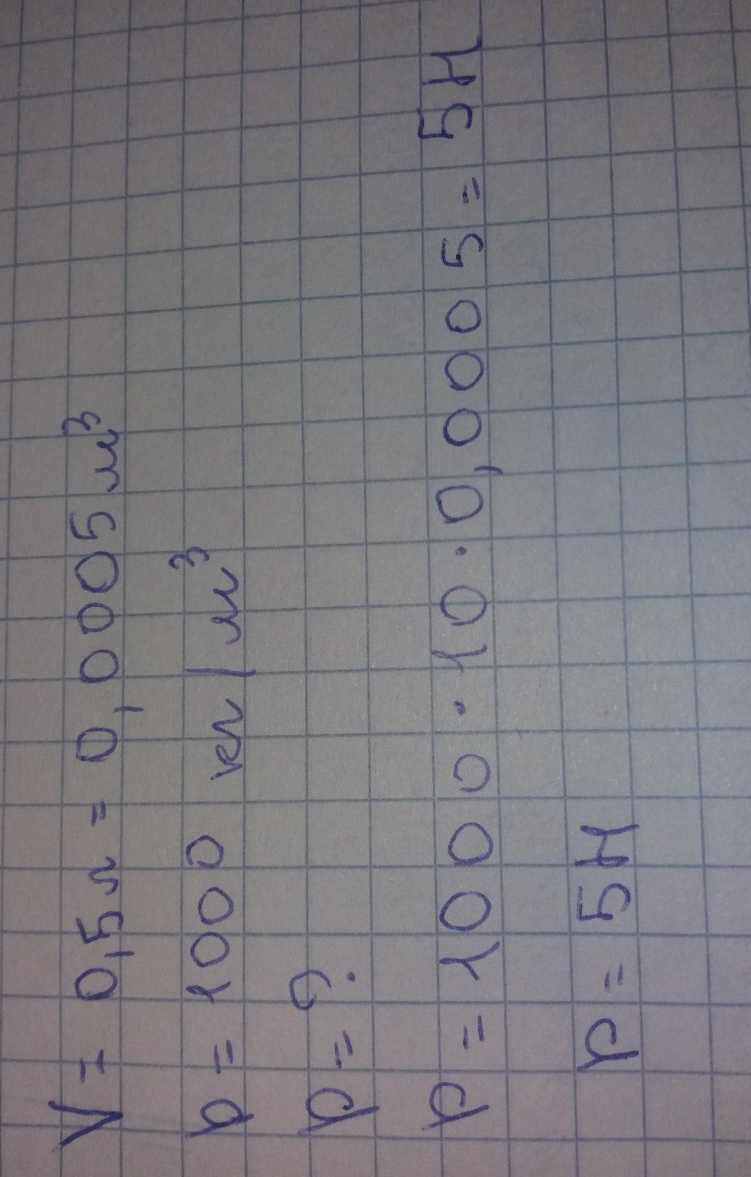 P=Fa=p*g*V=1000*10*0,0005=5 Н