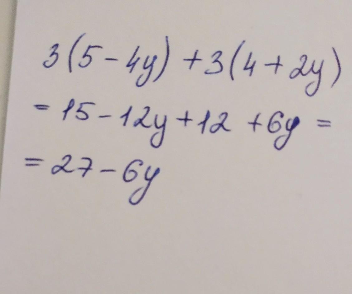 3(5-4у)+3(4+2у)=15-12у+12+6у=27-6у