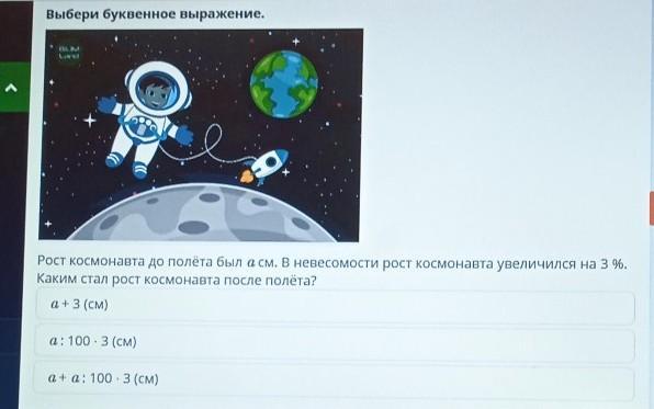 Рост космонавта до полёта был a см. В невесомости рост космонавта увеличился на 3 %.