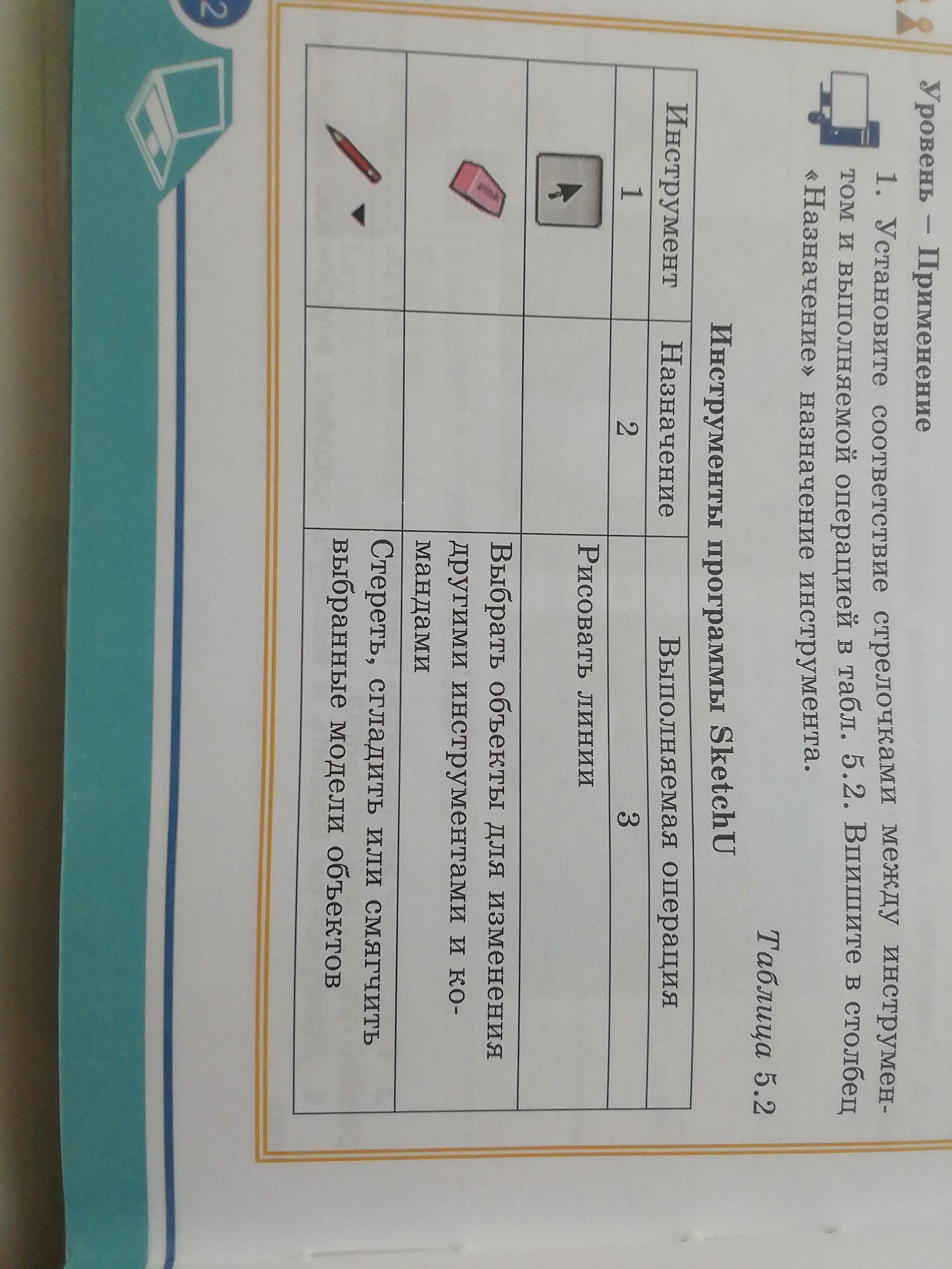 установите соответствие название стрелочками между инструментом и выполняемой операцией в таблице 5.2 Выпишите в столбец не назначенные назначенные инструменты 7 класс