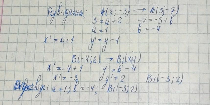точка А(2; -3) переходить у точку A1(3; -7). В яку точку перейде при