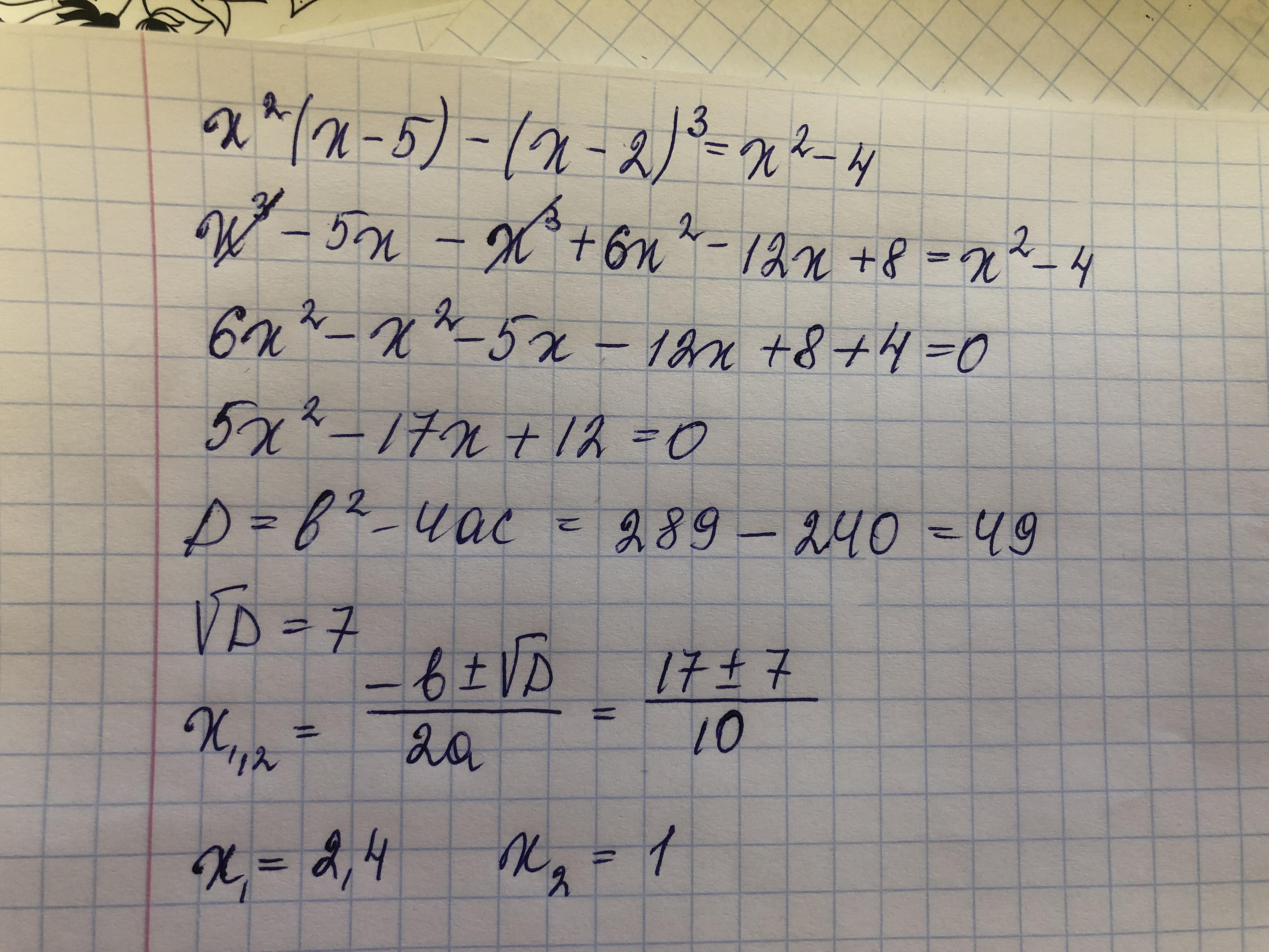 x² (x − 5) - (x − 2) ³ = x² − 4