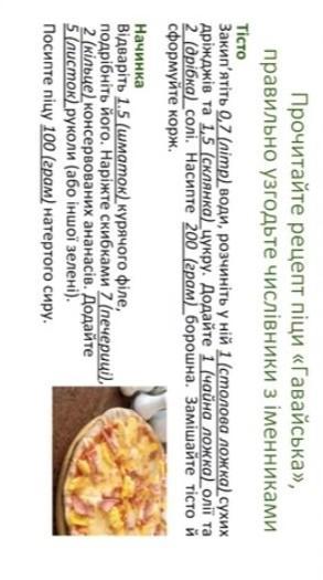 ДОПОМОЖІТЬ. переписати рецепт записати числівники словами та поставивши іменники що у дужках в правильній формі.
