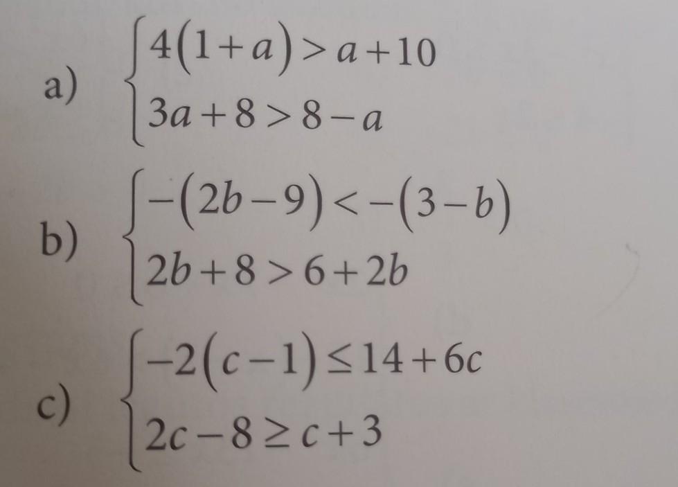 b) -(2b-9)<-(3-b); 2b-9>3-b; 2b+b>3+9; 3b>12; b>12/3; b>4