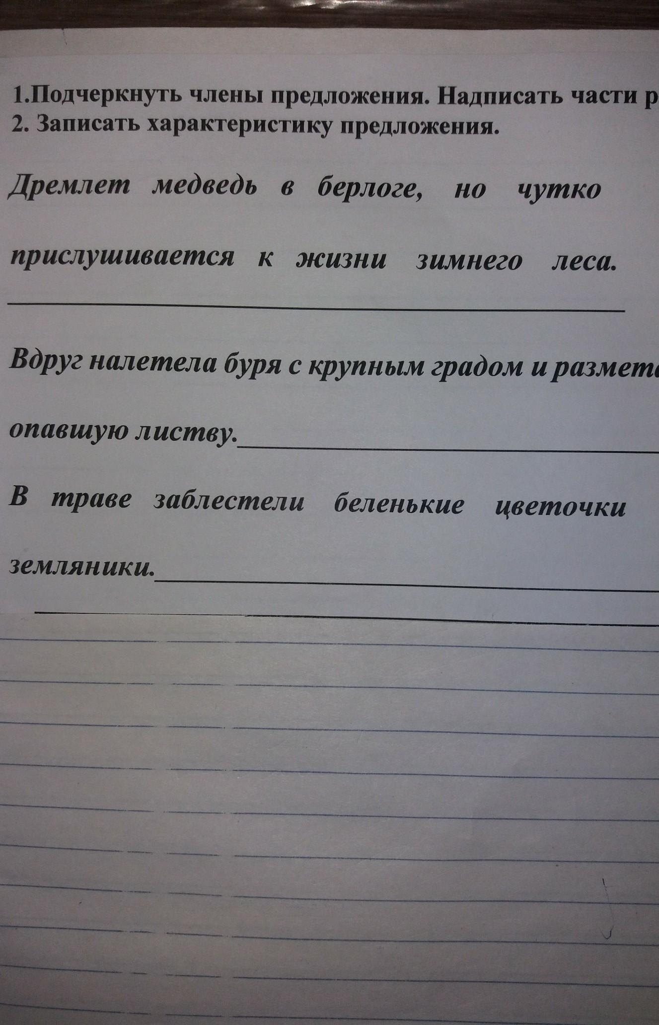 1.Подчеркнуть члены предложения. Надписать части речи.