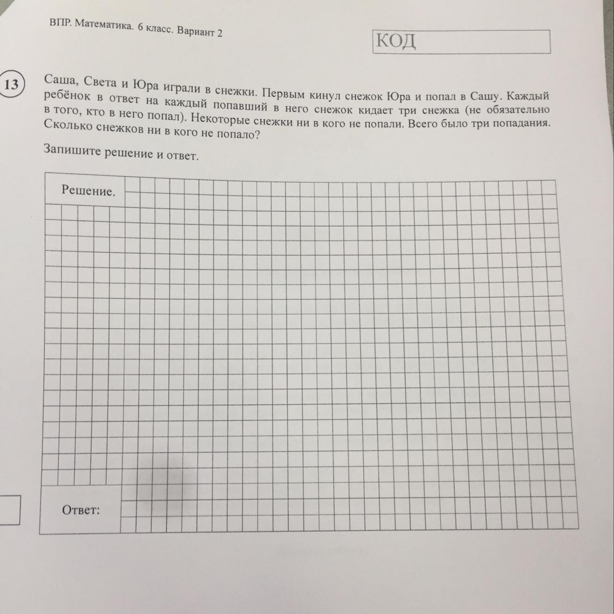 так как как первый снежок кинул Юра Он засчитывается как уже пропавший снежок но он одновременно попал уже в человека поэтом2 не попавших