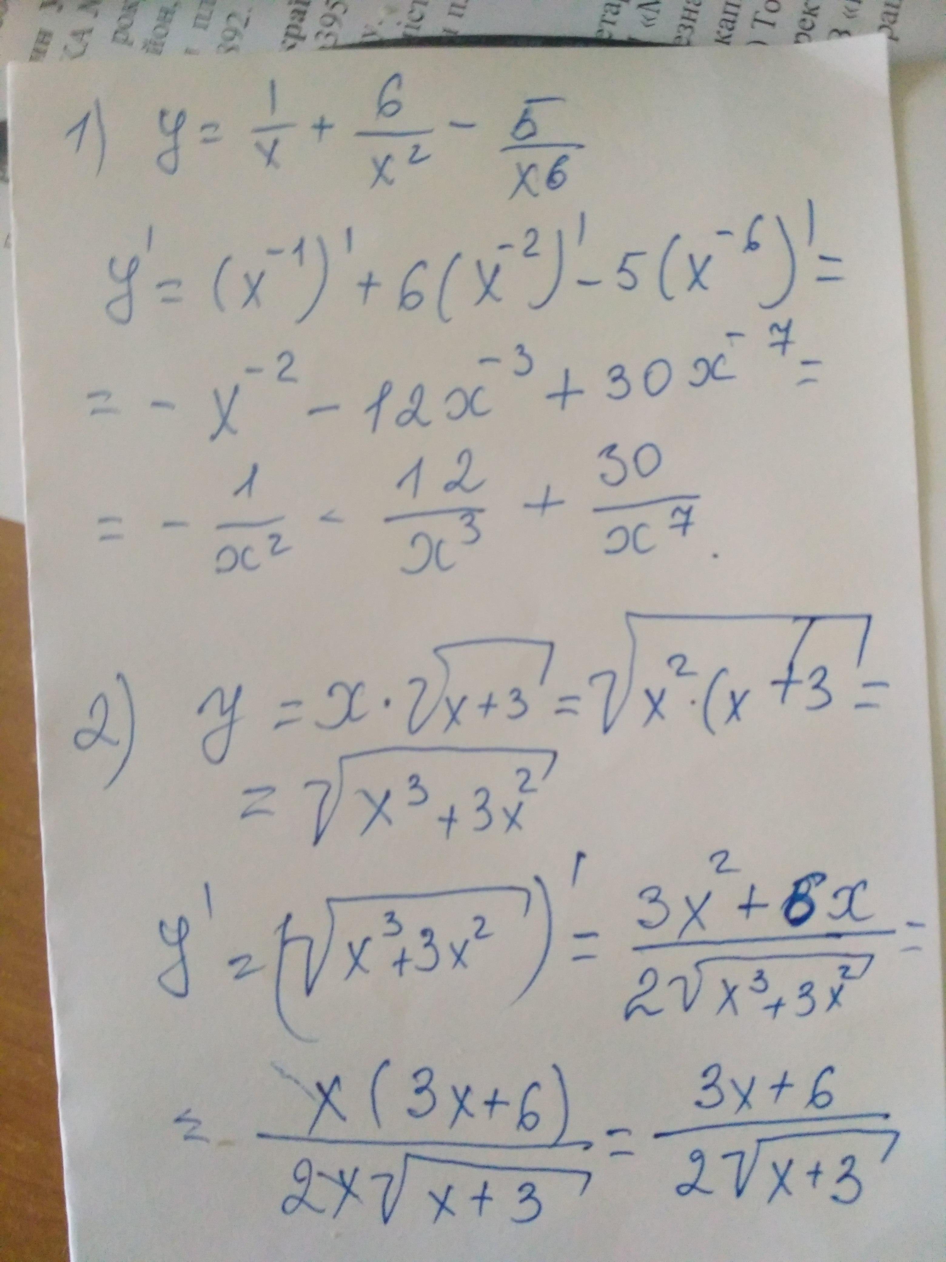 2.((3х)произв *(х^3+3) - 3х*(х^3+3) произв )/ (х^3+3)^2=(3*(х^3+3) -3х*3х^2)/(х^3+3)^2=(3х^3+9 -9х^3)/(х^3+3)=(-6х^3+9)/(х^3+3)
