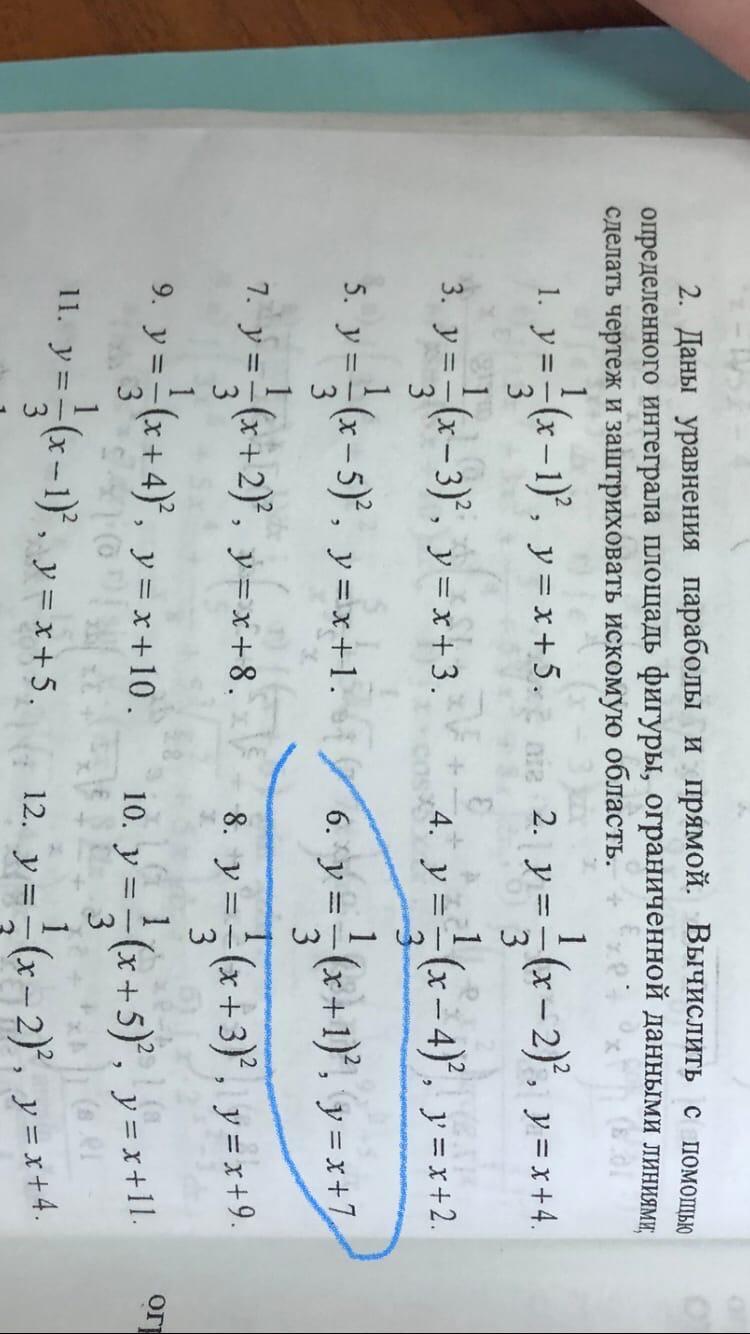 Даны уравнения параболы и прямой .вычислить с помощью определенного интеграла площадь фигуры ,ограниченной данными линиями; сделать чертеж и заштриховать искомую площадь