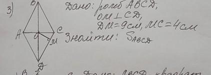 СД=ДМ+МС=9+4=13(см)- сторона ромба