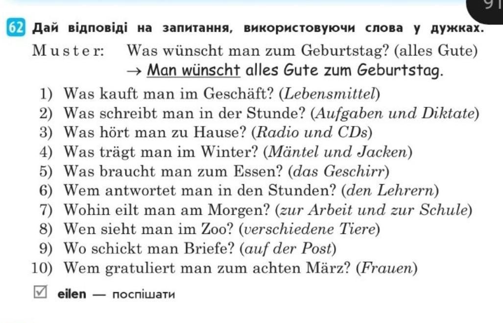 2) Man schreibt Aufgaben und Diktate in der Stunde.