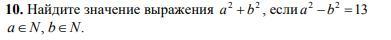 Так 13 простое число, то либо a+b = 13 и a-b = 1 либо наоборот a+b = 1 и a-b = 13