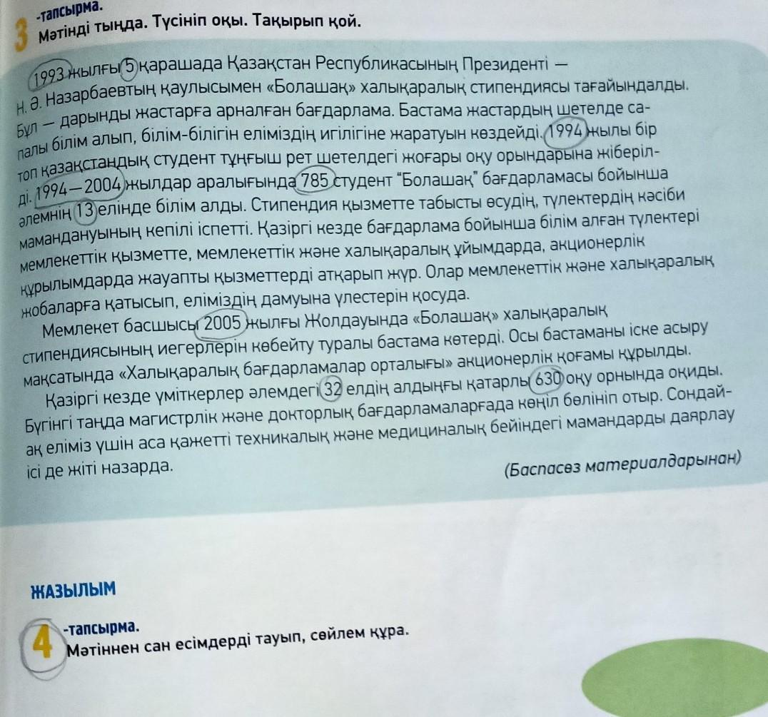 Мәтіннің тақырыбы:"Болашақ"бағдарламасы.