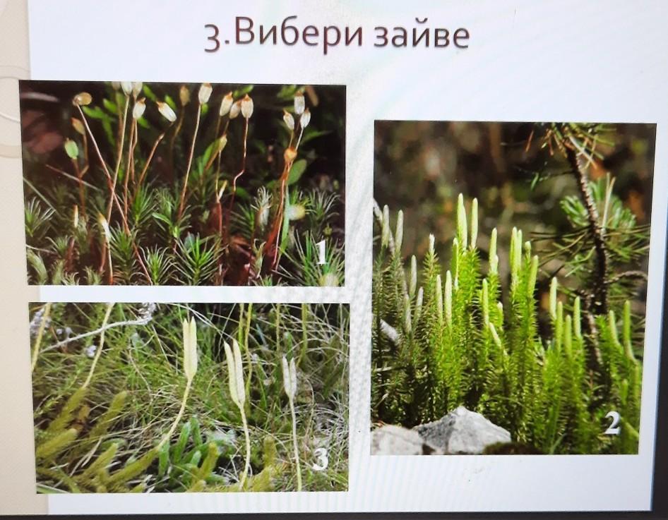 1, потому что это мох Политрихум, а 2 и 3 - плауны