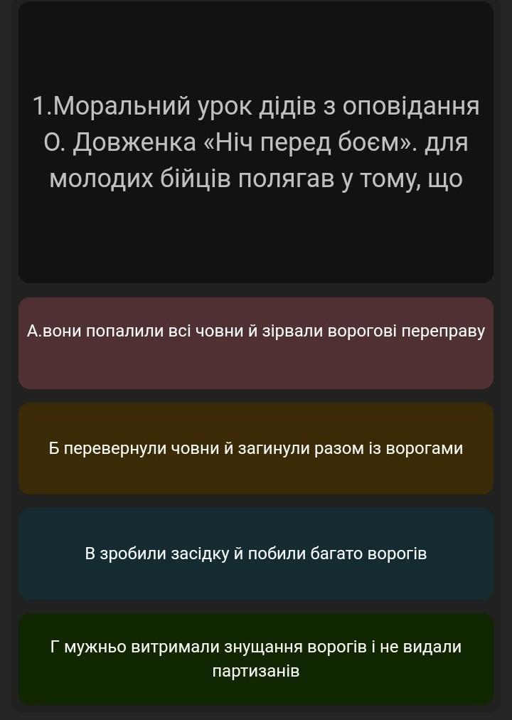 Моральний урок дідів з оповідання "ніч перед боєм". для молодих бійців полягав у тому,що...