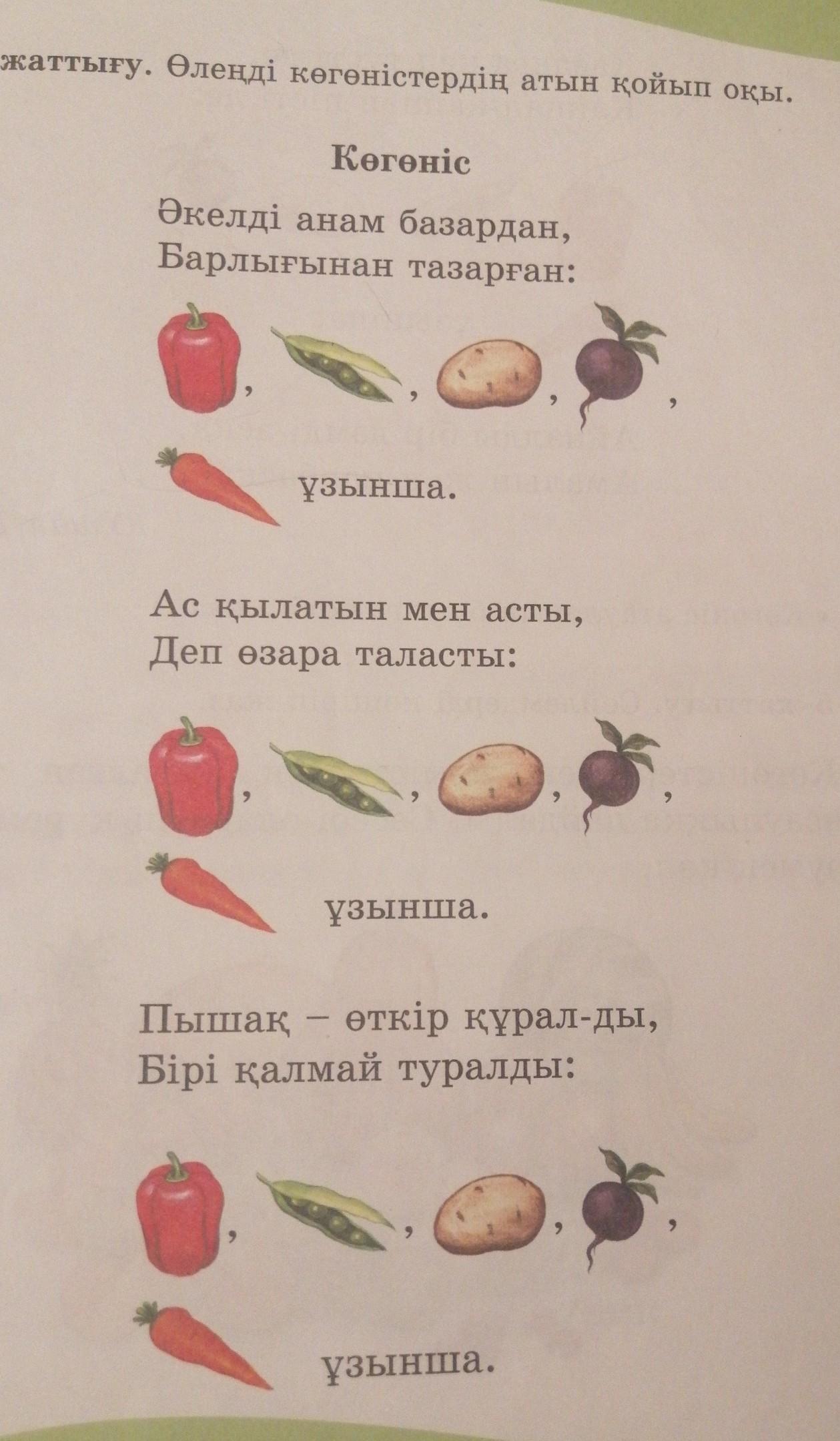 бұрыш, бұршақ,картоп,қызылша,сәбіз, ұзынша.