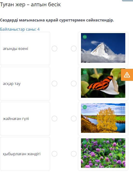 Сөздерді мағынасына қарай суреттермен сәйкестендір.