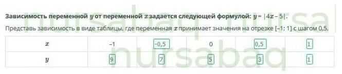 Представь зависимость в виде таблицы,где переменная x принимает значения на отрезке [-1;1] с шагом 0,5
