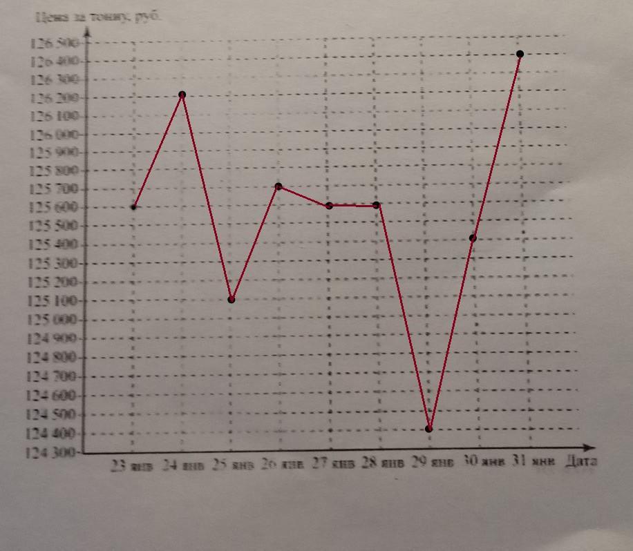 на 600 рублей, a затем снизилась на 1100 рублей. К открытию торгов 26 января цена за тонну составила