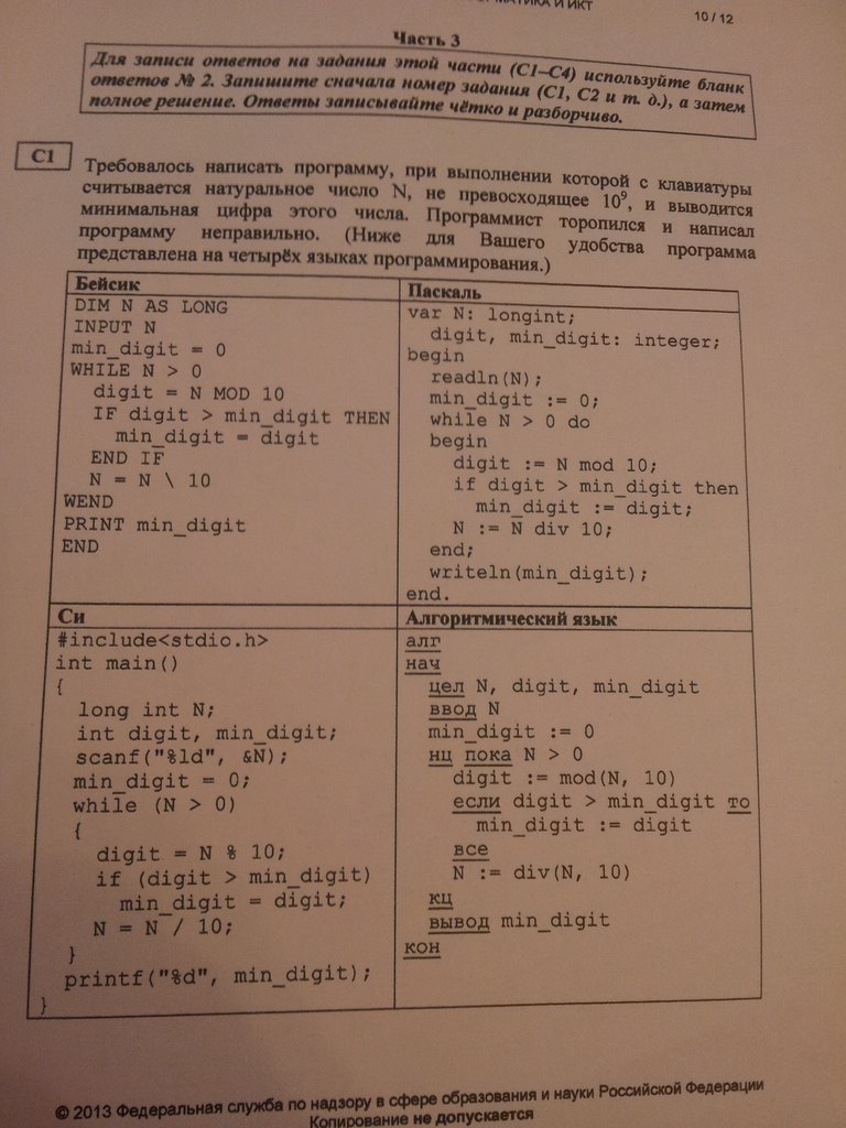 2) Ошибки: в 5 строке (по Паскалю) там надо min_digit:=n;(минимальное число никогда не обнуляют!)