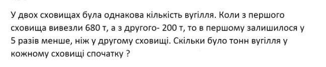 Отже, спочатку у кожному зі сховищ було по 800 т вугілля.
