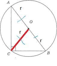 прямокутний трикутник- то його властивість, бо він опирається на діаметр описаного кола і медіана, опущена на бісектрису з прямого кута є радіусом описаного кола і дорівнює половині гіпотенузи