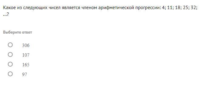 Таким образом, только число 165 делится нацело на 7, следовательно, оно и является членом прогрессии.